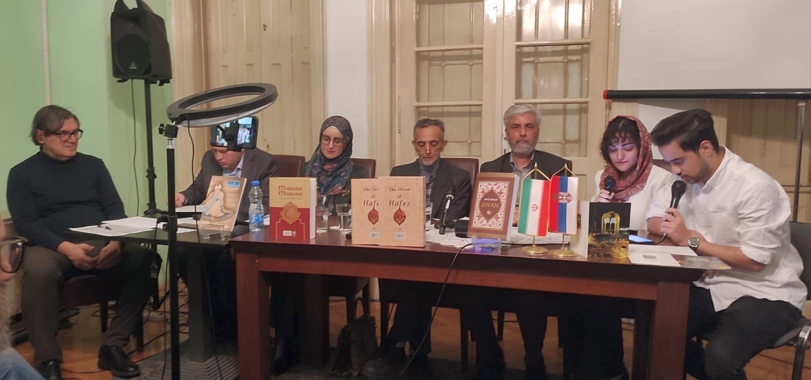 Књижевни сусрет у част иранских песника Хафеза и Румија одржан је уочи Дана сећања на Хафеза у петак увече, 10. октобра, у просторијама Српског књижевног друштва у Београду. Сусрету је присуствовала група поштовалаца иранске културе и љубитеља персијског језика и књижевности, као и група Иранаца који живе у Београду.