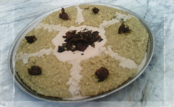 Након што се качи припреми, сипа се у кружну посуду, а средина се пуни разблаженим кашком, месом и прженом наном. Затим се ставља на средину стола и свако сипа мало у своје јело.