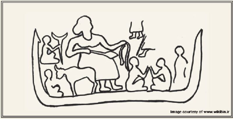 Плочица откривена у Чогамишу, која приказује брод и његове путнике